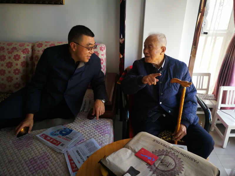 96歲的高齡老人楊寶藩是公司離休老干部,陳總與楊老親切交談,感謝楊老對公司的發展做出的貢獻,并詳細詢問了老人們的生活起居和身體情況。