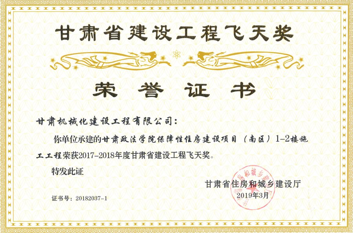 甘肅省住房和城鄉(xiāng)建設(shè)廳關(guān)于2017-2018年度(第二批)甘肅省建設(shè)工程飛天金獎和飛天獎入選名單公示已經(jīng)結(jié)束,我司共有兩個項目榮獲甘肅省建設(shè)工程飛天獎。
