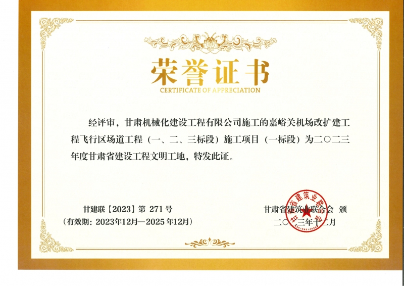 2023年度甘肅省建設(shè)工程文明工地 嘉峪關(guān)機(jī)場(chǎng)改擴(kuò)建工飛行區(qū)場(chǎng)道(一、二、三標(biāo)段) 施工項(xiàng)目 (一標(biāo)段)